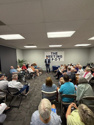 Ford added that families are being exploited not only by housing costs but also by rising medical costs. One attendee interjected with, “My wife works at the Salvation Army Food Bank. Every month between 900 and 1,000 people come through those doors.”
